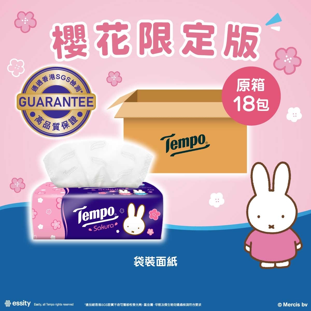 四層櫻花限量版袋裝面紙18包箱裝