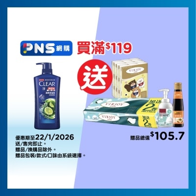 全線精選頭髮護理(Dove / Tresemme / Clear / Bawang買滿$119,送唯潔雅極致綿柔四層衛生紙(隨機一款)。數量有限,送完即止,優惠以每張發票計算。<BR>