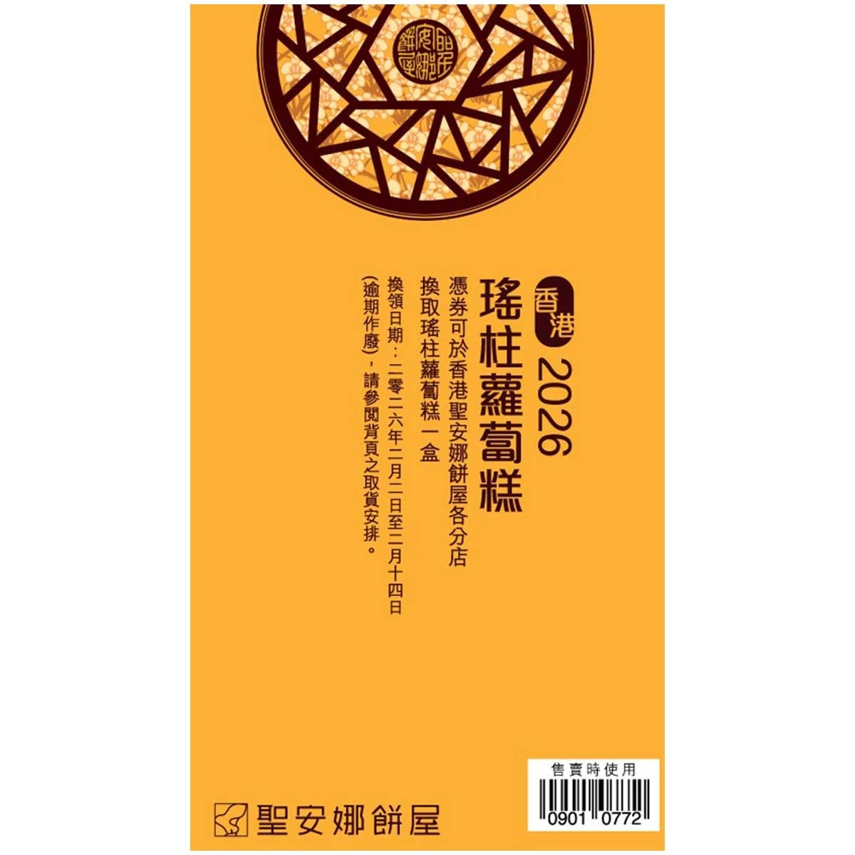 全線聖安娜年糕禮劵買3件,可享95折優惠。數量有限,售完即止。優惠以每張發票計算。<BR>