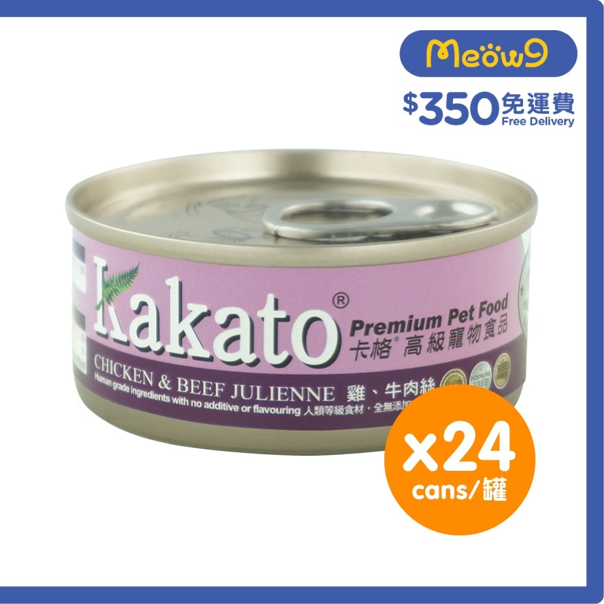 [24罐裝]雞、牛肉絲(70gx24)貓犬適用 - KAKATO 貓狗鮮食罐